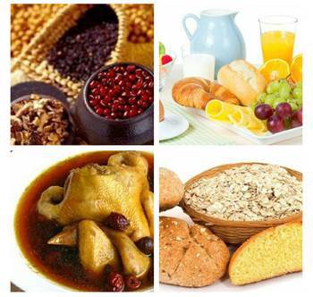 多吃谷类、花生等,因为这些食物中含有大量易于消化的蛋白质、维生素B和C、铁和钙质等。他说这些每天至少补充50        g。